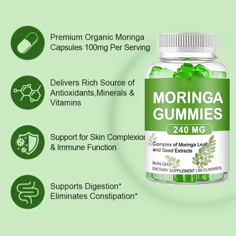 Ausreson OEM Private Label Super Greens Moringa Leaf Extract Milk Thistle Gummies Slimming Product Organic Moringa Gummies