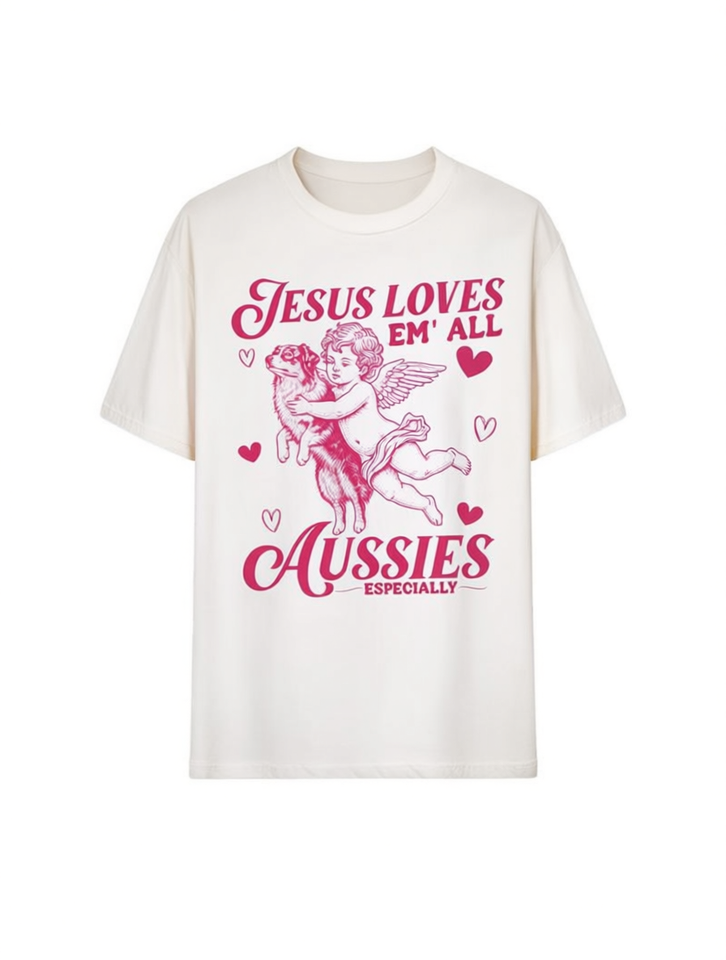 T-shirt Aussie Lover girocollo, manica normale, tessuto leggermente elasticizzato, stampa San Valentino, per proprietari di pastori australiani, unisex