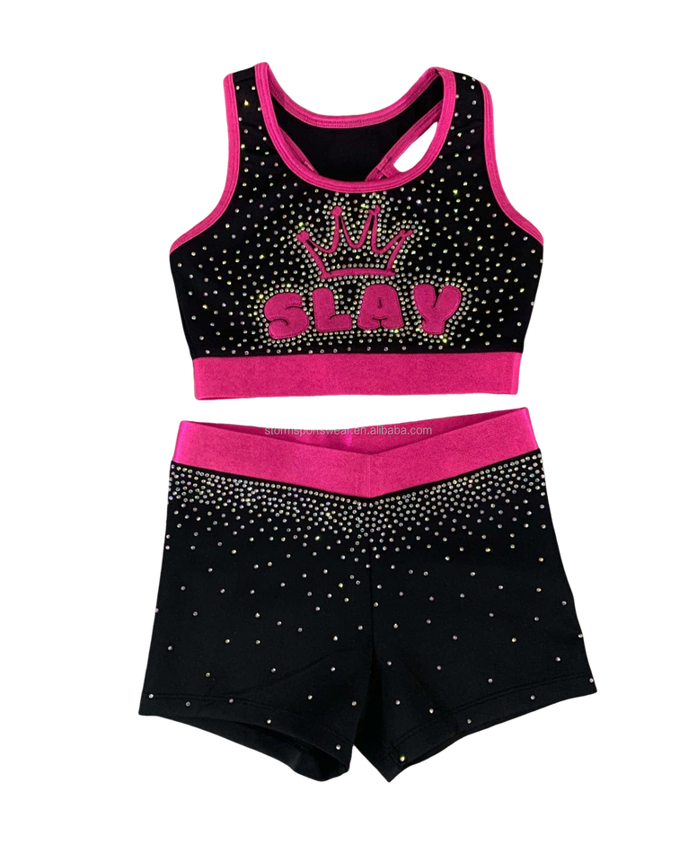 Completi da Riscaldamento Personalizzati con Strass Australia Canada, Set da Allenamento per Cheerleading Giovanile in Spandex Stampato a Sublimazione