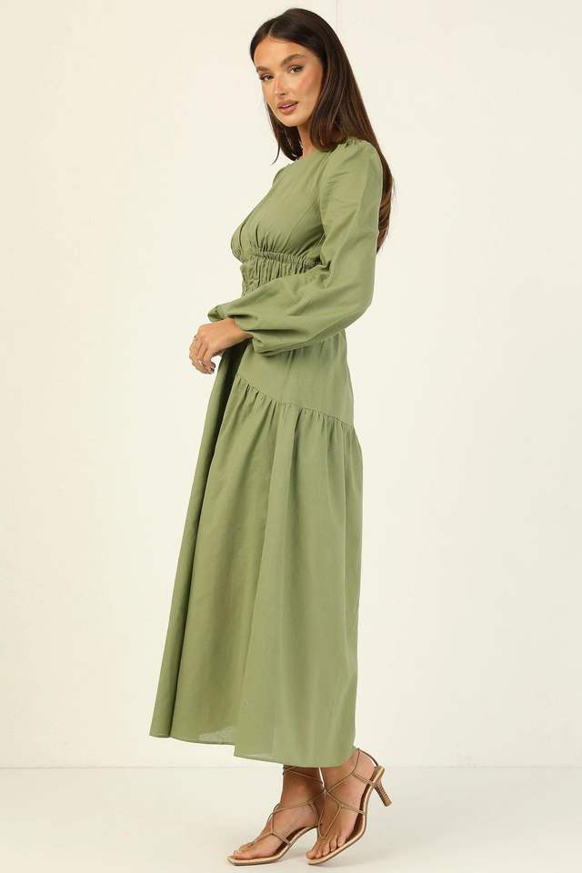 Abito lungo in stile Australia da donna manica lunga girocollo tinta unita Maxi abito lungo