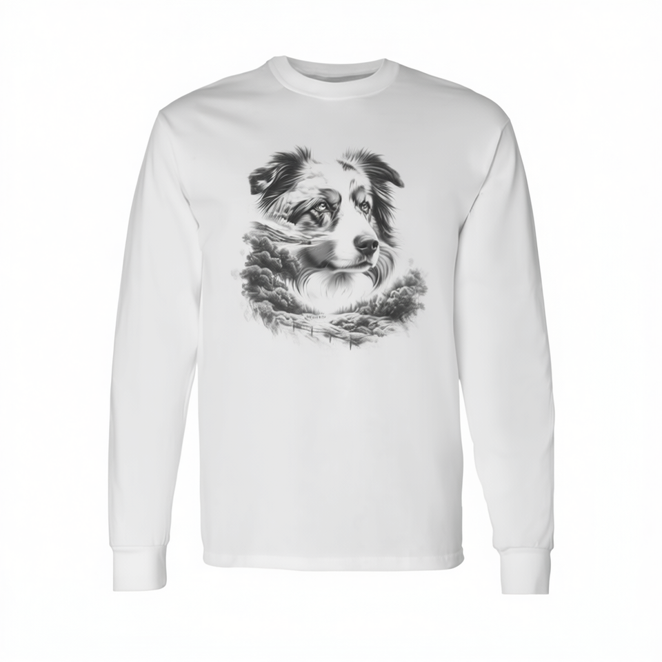 T-shirt a maniche lunghe con design naturale per cani da pastore australiano, idea commemorativa