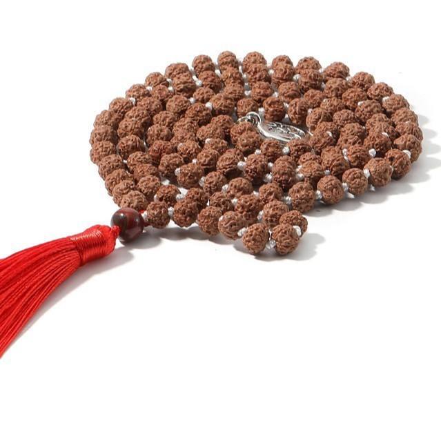 Autentico 5 Mukhi Rudraksha Beads Mala con nappe 108 perline pietra di diamante naturale per la meditazione preghiera e la guarigione