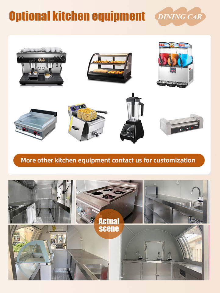 Fornello a bruciatore, Griglia piatta, Tavolo a vapore, Insalatiera, Friggitrice, Forno, Microonde, Spazio di preparazione, Tostapane, Polli da carne, Macchina Soft Serve, PiastraAttrezzatura da cucina