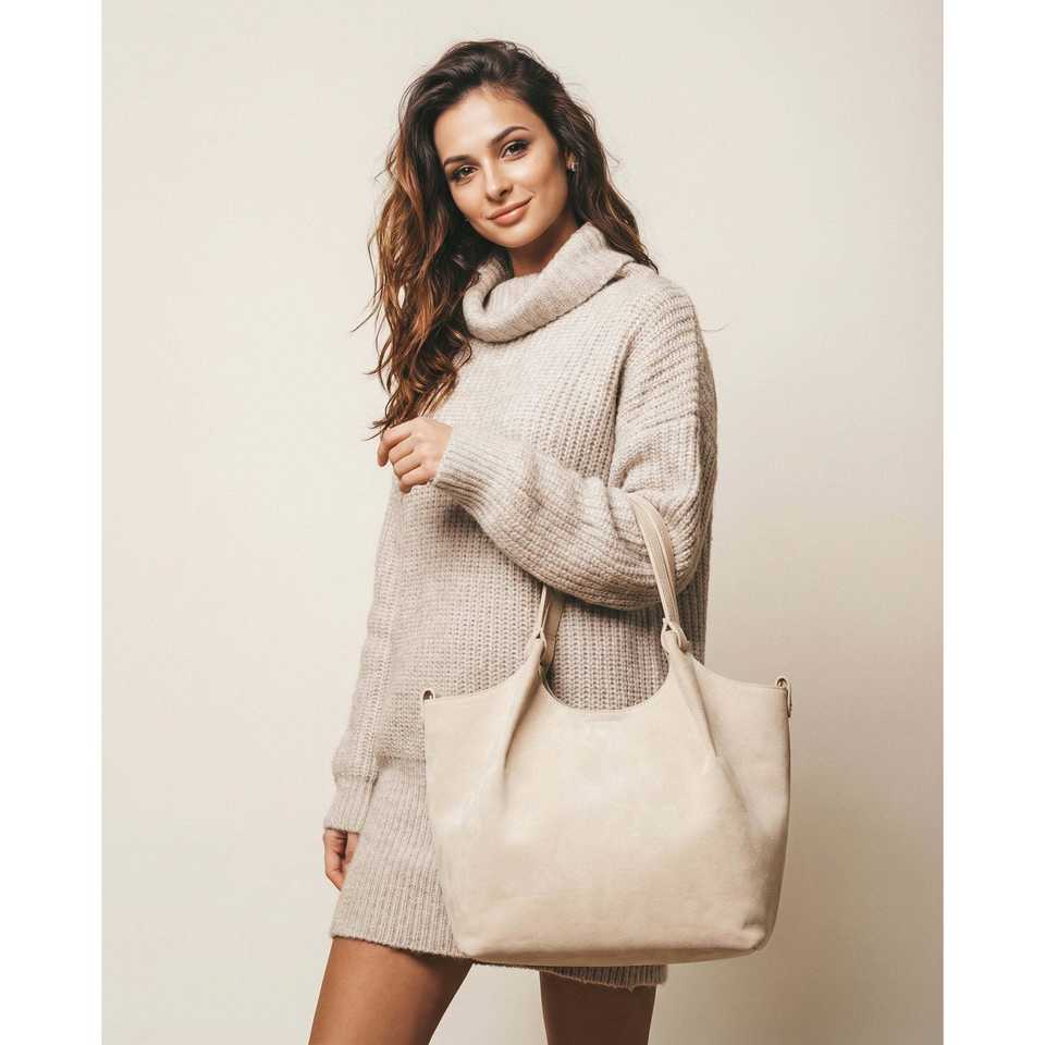 Autentica Borsa a Spalla da Donna in Vera Pelle Scamosciata Italiana Morbida, Due Cinghie, Chiusura con Zip, AP IDEA MODA Art. 26059sue