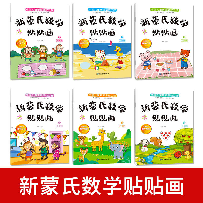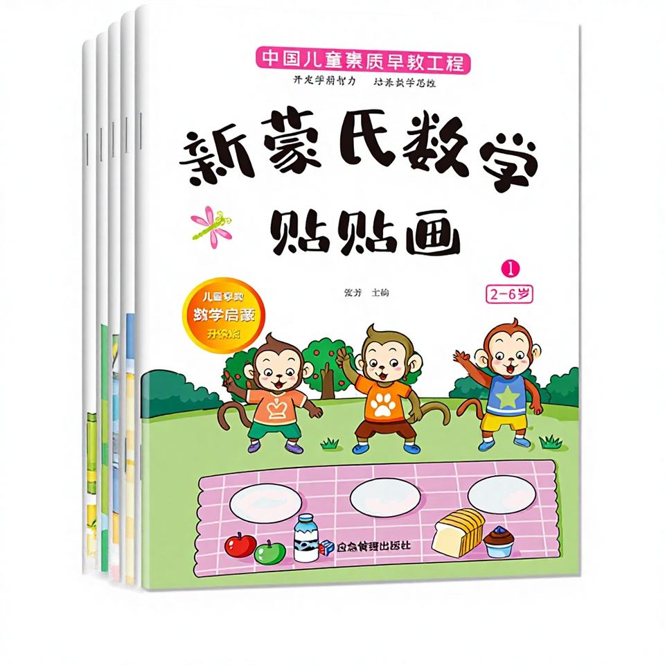 Autentico Nuovo Set di Libri con Adesivi Matematici Montessori 6 per Bambini 2-6 Anni Materiale Cartaceo Origine Cina - Educazione Matematica e Logica