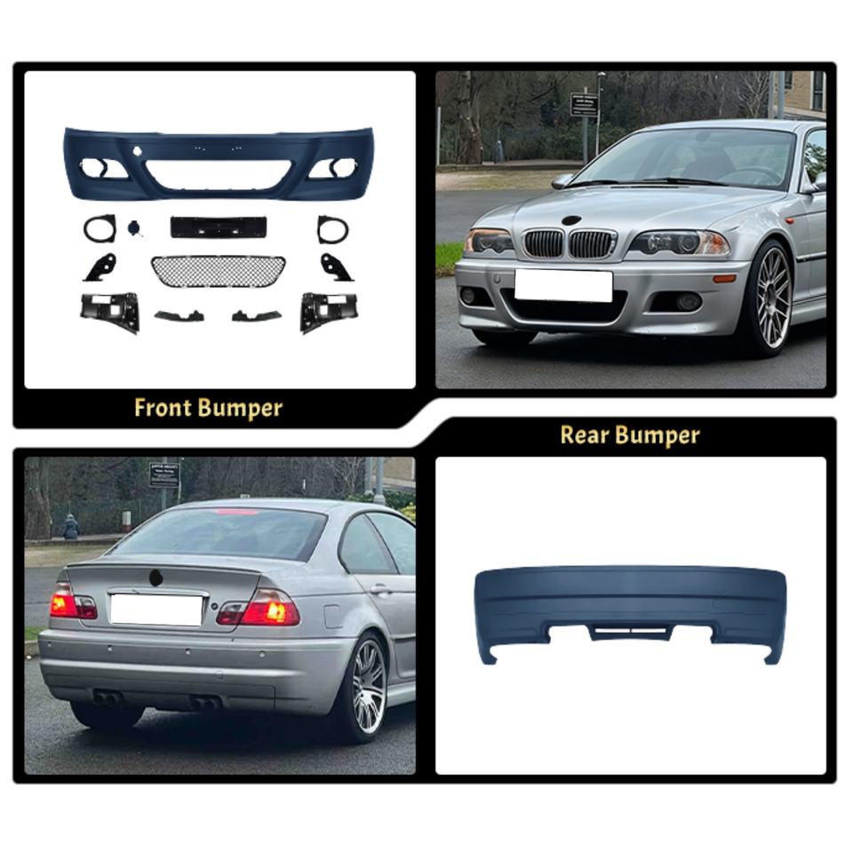 Parti Auto per BMW E46 Stile M3, Kit Paraurti Anteriore e Posteriore per Berlina 4 Porte 1998-2004, Kit Completo per Carrozzeria