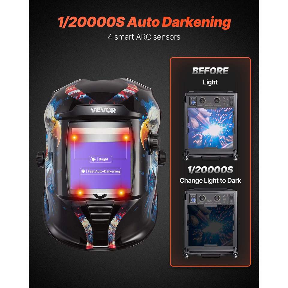 Casco per saldatura auto-oscurante 10x8 cm True Color a energia solare con 4 sensori di arco, ampia scala di oscuramento 1/1/1/1