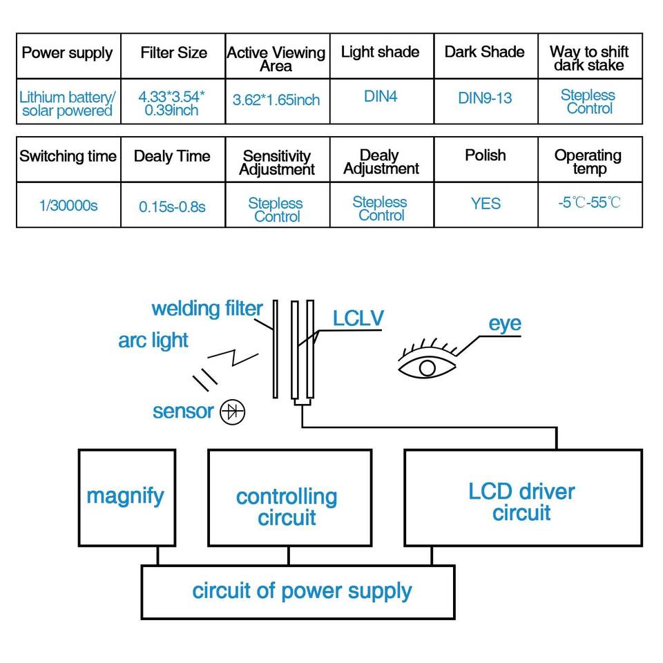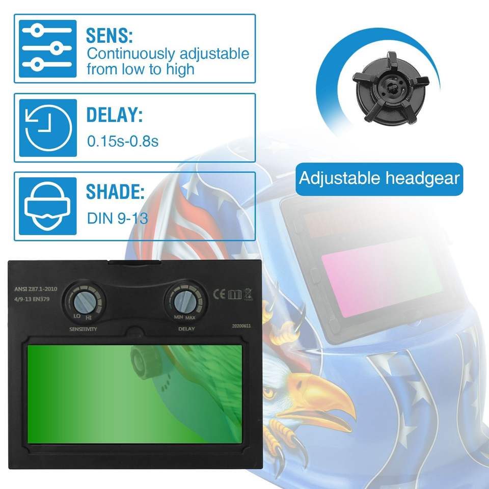 Casco per saldatura auto-oscurante a energia solare, gamma di oscuramento 9-13, visiera ampia regolabile
