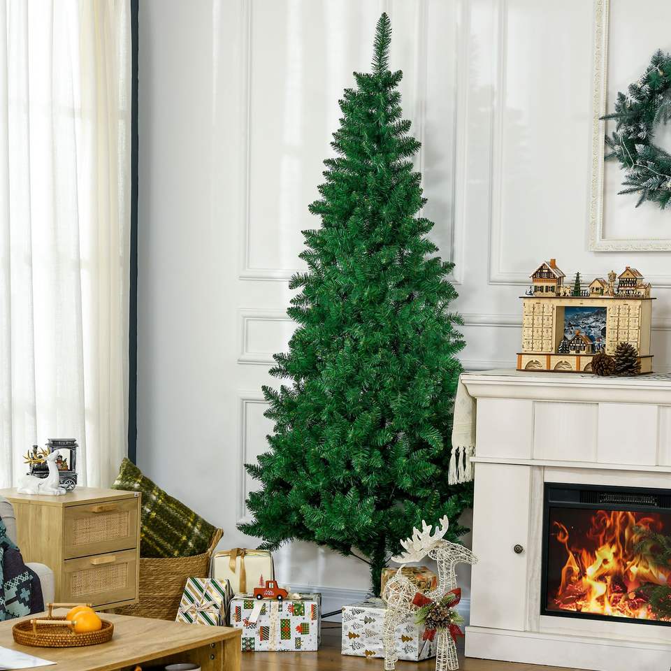 Alberi di Natale Artificiali Semi-Completi con Apertura Automatica, 7 Rami, Base in Acciaio per Decorazioni Natalizie da Interni