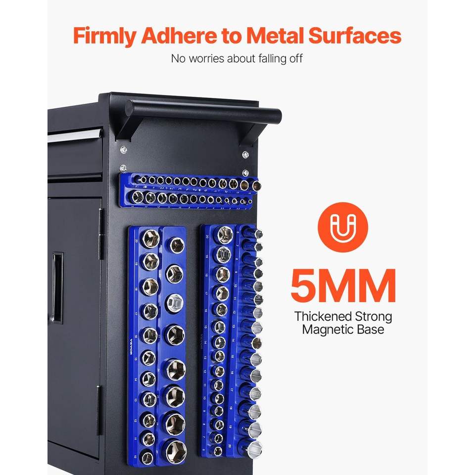 Set di Attrezzi per Riparazione Auto 3 Pezzi, Vassoi Magnetici per Bussole da 1/4, 3/8, 1/2 con Etichette Trasparenti, Organizzatore Magnetico per Bussole