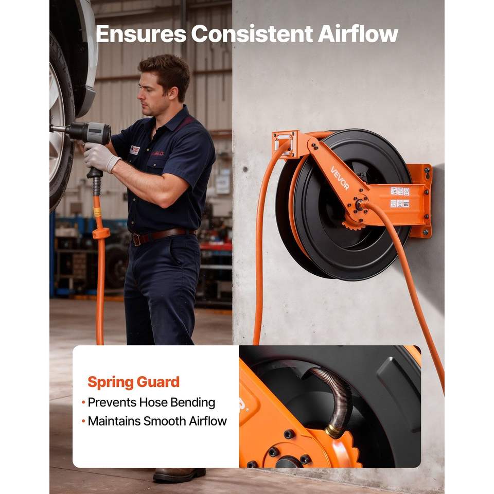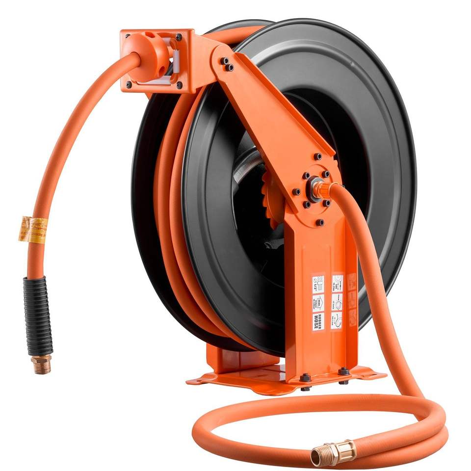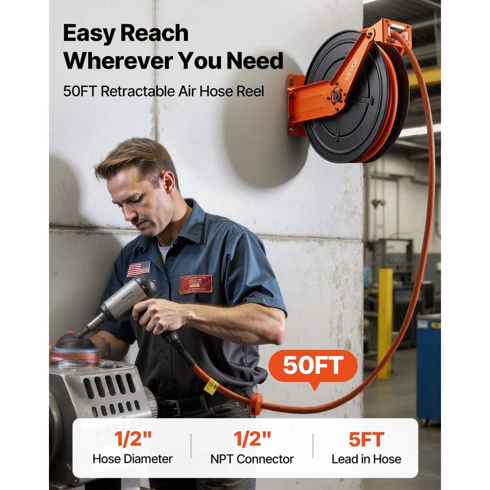 Avvolgitubo Automatico per Compressore d'Aria da 1/2 Pollice x 50 Piedi, Tubo Industriale in Gomma da 300 PSI con Cavo di Alimentazione da 5 Piedi