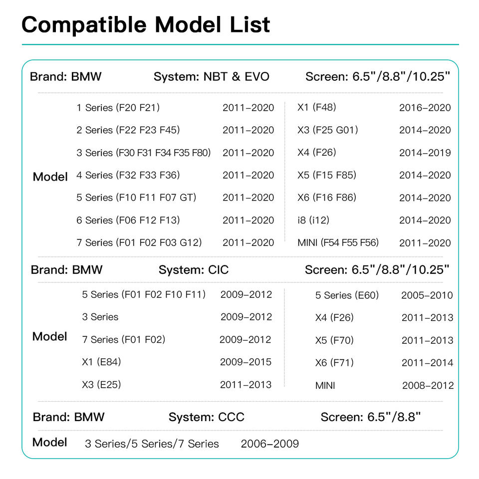 Kit Decoder Interfaccia Autoabc Carplay Airplay Mirror Link Wireless Apple Carplay Android Auto per BMW NBT EVO CCC MINI Carplay