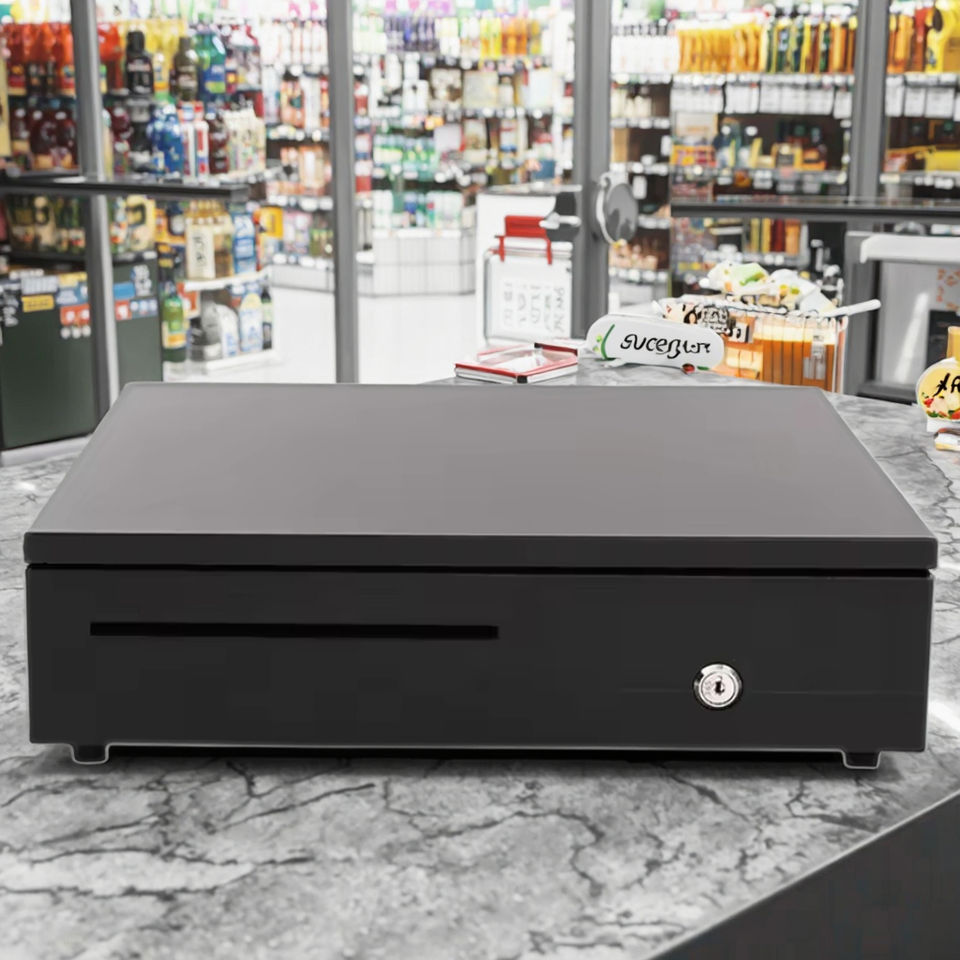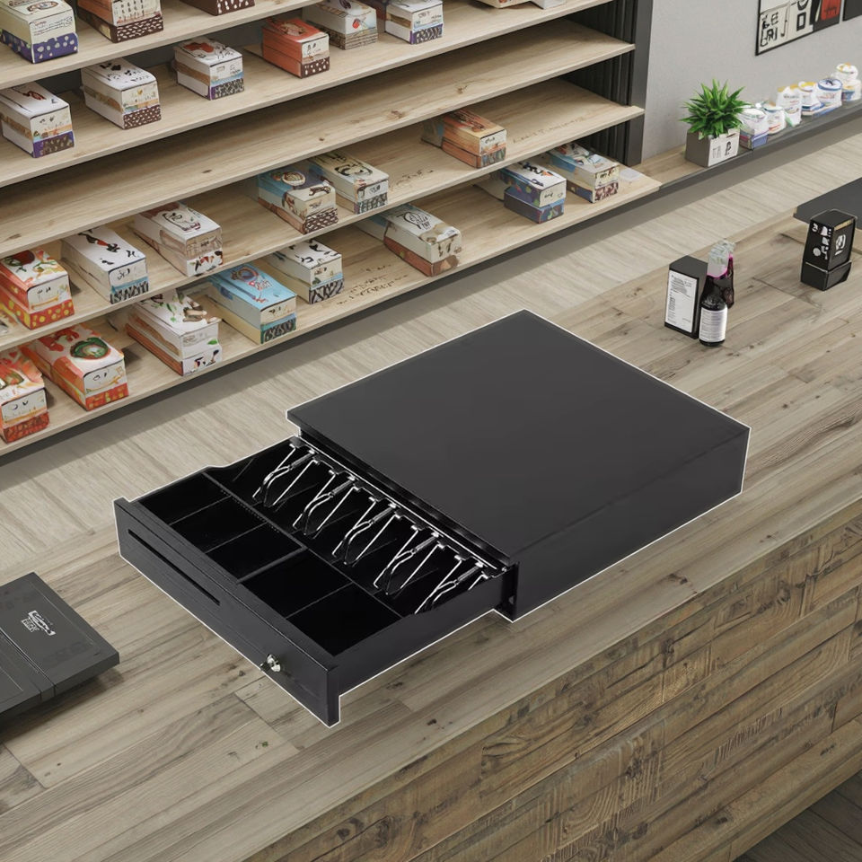 Cassetto Portadenaro POS Automatico con Cinque Scomparti in ABS, 12V, Dimensioni 370x335x80mm per Uso Ufficio