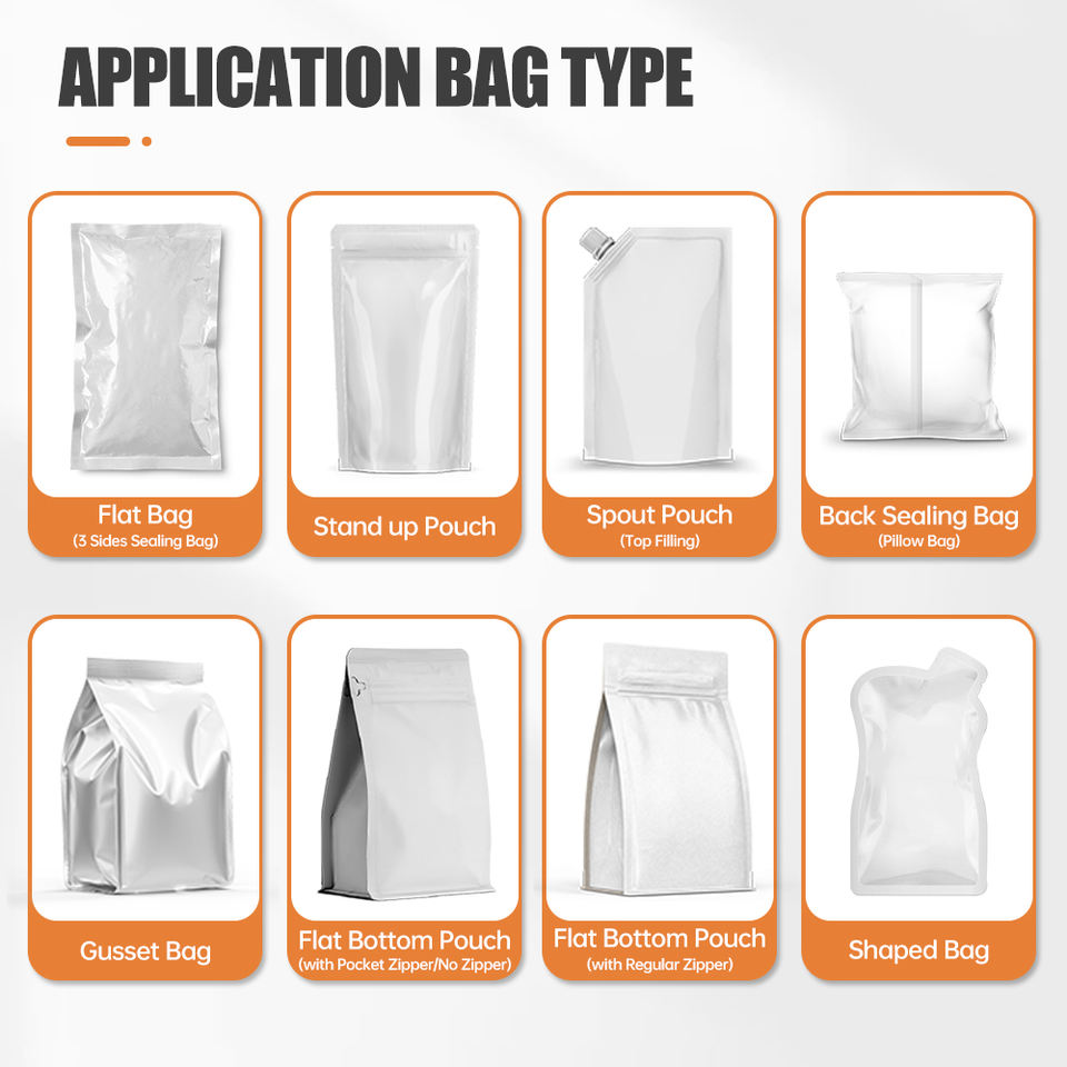 Optional function:zipper opening, vacuum, gas flushing, date printing, etc