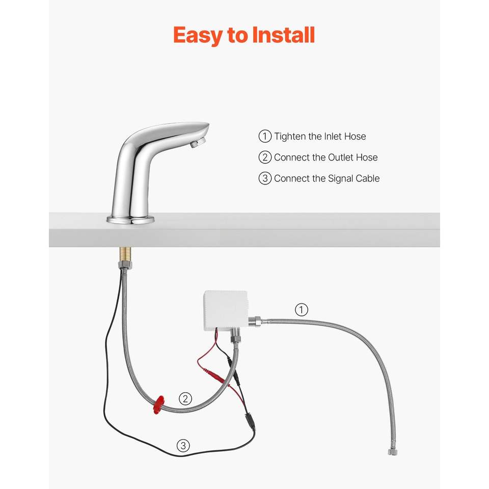 Rubinetto Automatico per Bagno con Sensore di Movimento, Senza Contatto, con Copertura per Foro Acqua Fredda, Funzionamento a Batteria