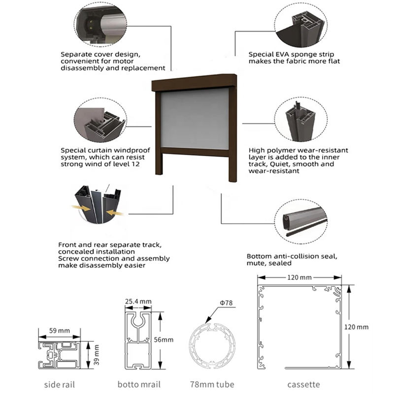 Parasole motorizzato automatico antivento impermeabile giardino patio oscuramento con zip rullo schermo retrattile tapparelle per esterni