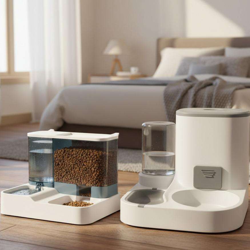 Automatic Pet Food And Water Dispenser Double Large Capacity Bowl Translucent Standard Feeder