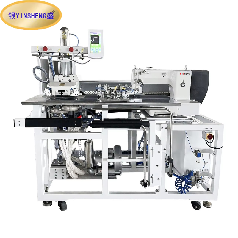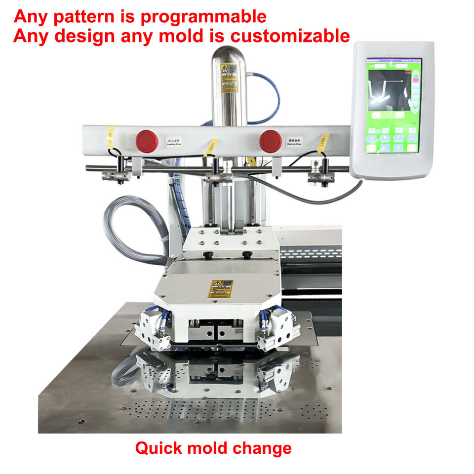 Macchina Automatica Programmabile per Applicazione di Patta con Motore Cucisce Diversi Stili di Patta Cambiando Vari Stampi