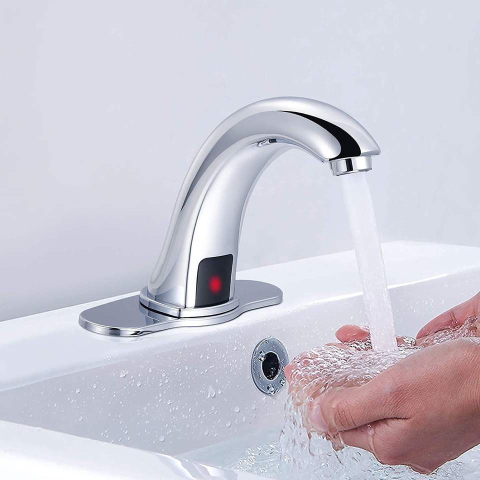 Rubinetto Automatico Cromato per Lavabo Bagno con Sensore, Senza Contatto, Mani Libere, per Acqua Fredda, Piastra di Montaggio Inclusa