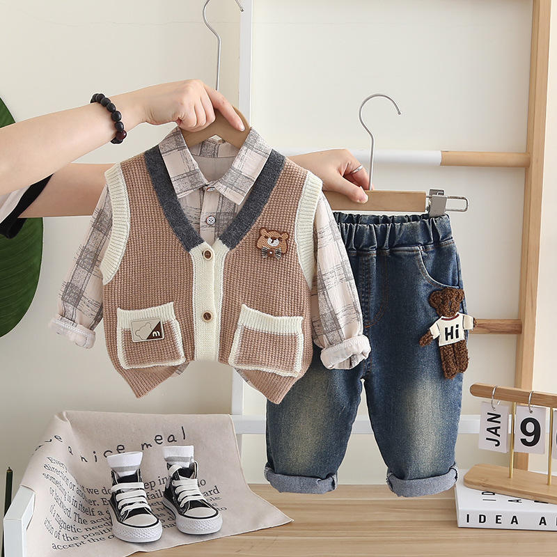 Autunno 3 pezzi abbigliamento formale jeans set per ragazzi 5 anni