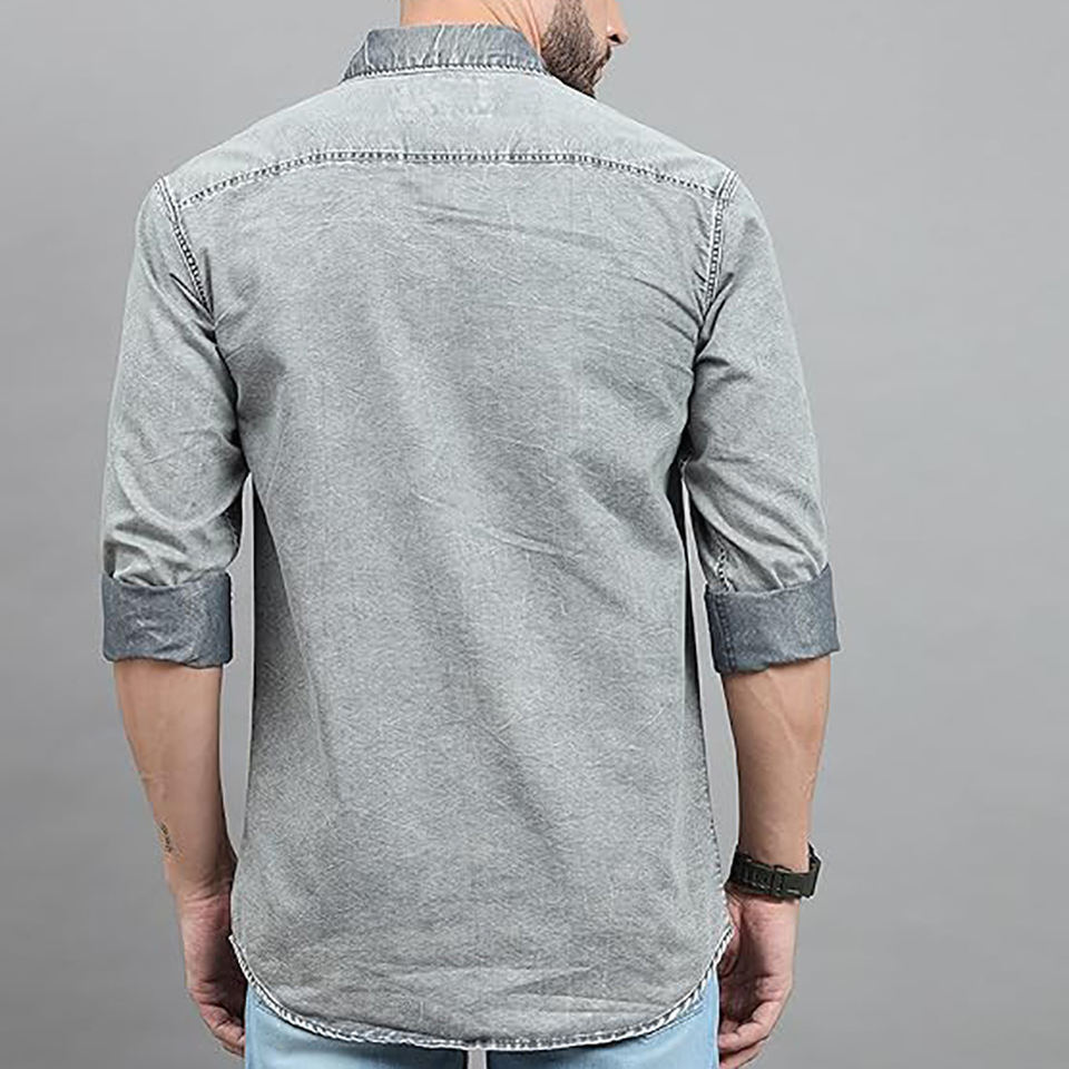 Autunno Casual da uomo camicia di Jeans in Denim di colore grigio sbiadito a maniche lunghe camicie in denim Semi-formale in cotone