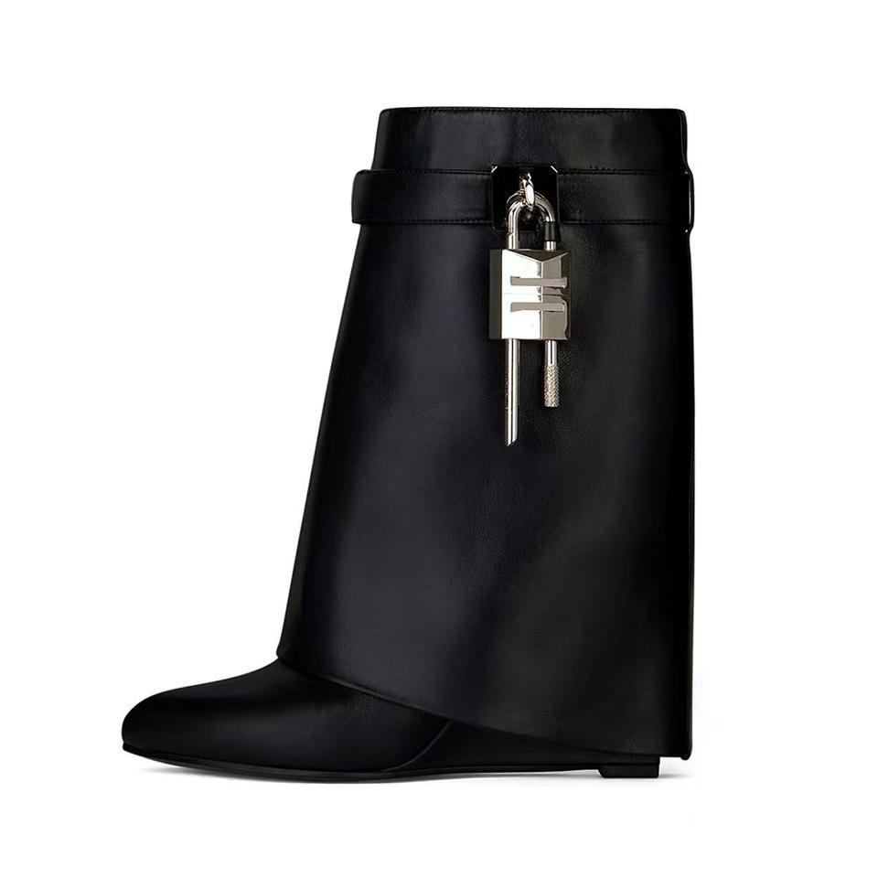 Autumn European American Style Artificial Leather Wedge Heel Super High Tube Zipper Boots with Lock Buckle Rubber Outsole Women