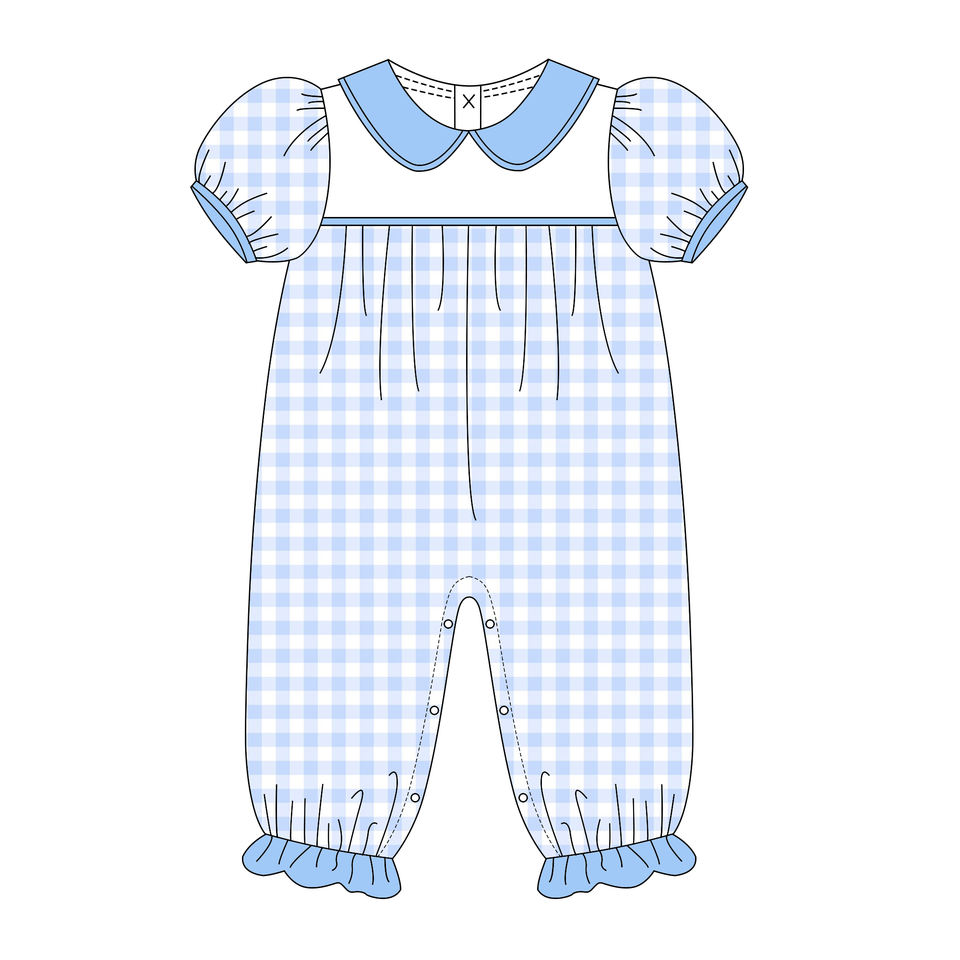 Autunno Longall colore blu chiaro con colletto Peter Pan vestiti per bambine con nome personalizzato balze pagliaccetto lungo per bambini