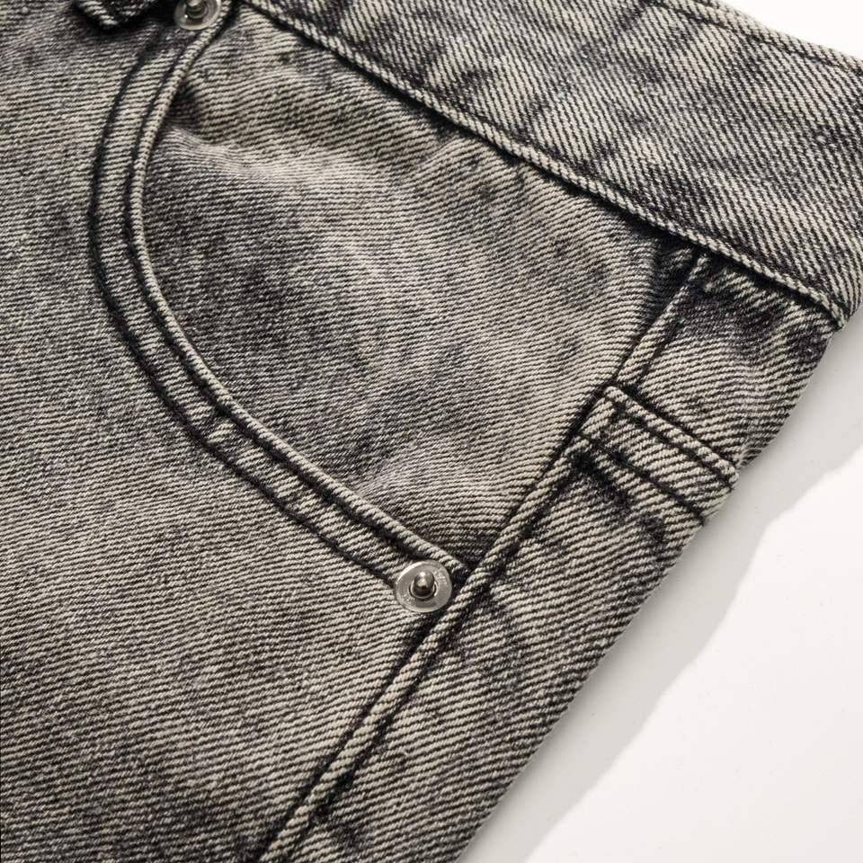 Autunno uomo retrò stile medio-riposto traspirante Jeans grigio fumo nappe grigio cemento stile dritto lavato in Denim tinta unita con bottone
