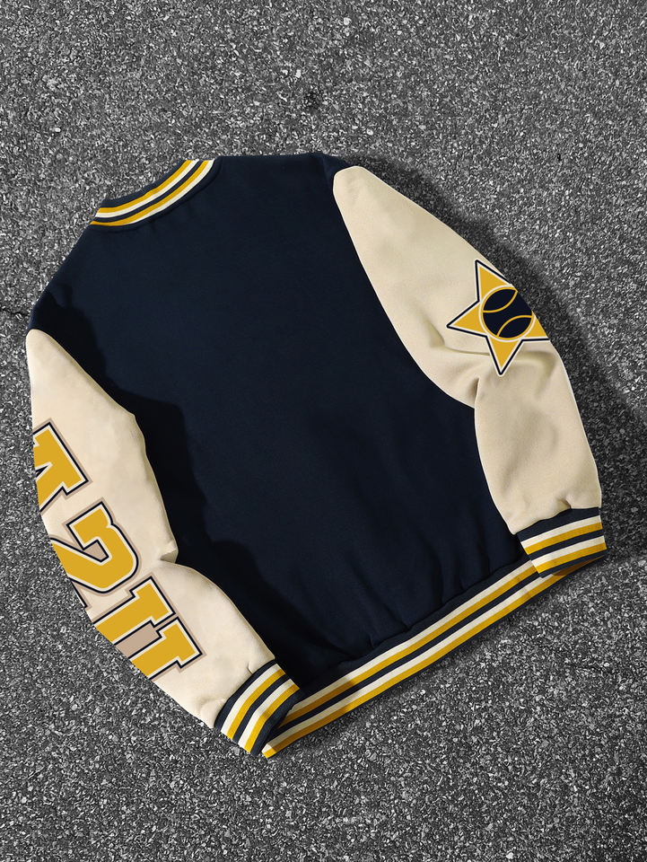 Giacca College da Uomo Autunnale Stile Streetwear con Logo Personalizzato sul Davanti, Maniche Lunghe, Fodera in Pile e Collo Alto Riscaldato