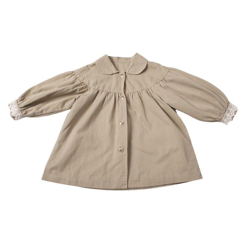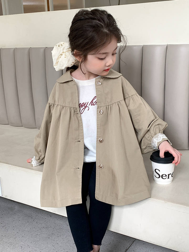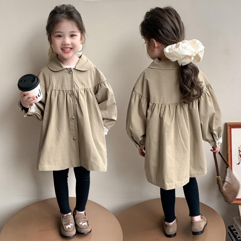 Cappotto Trench in Misto Cotone Tinto in Capo di Media Lunghezza per l'Autunno, Nuovo Stile 2026, Moda Coreana Trendy per Bambine