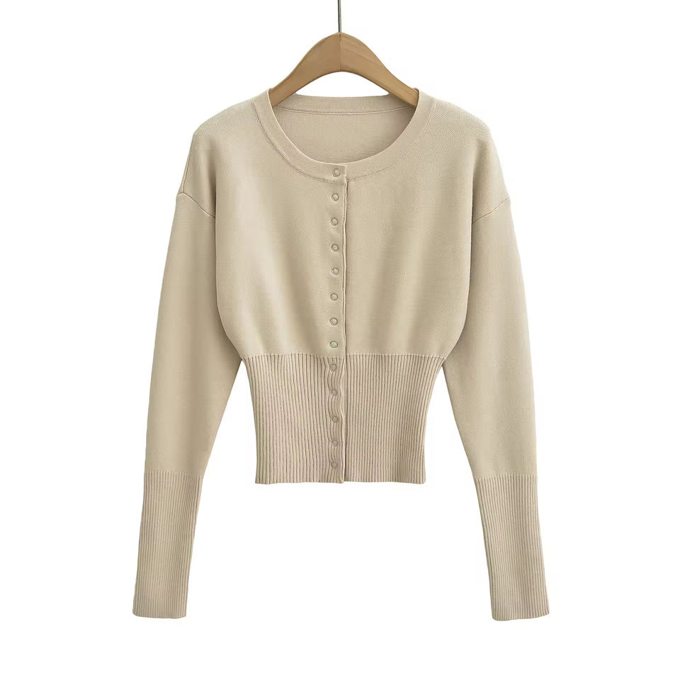 Nuovo Cardigan Corto da Donna in Maglia, Stile Francese Elegante, Tinta Unita, Scollo a V con Bottoni Nascosti, Casual, Autunnale