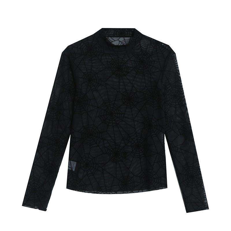 Autumn New Slim Fit Turtleneck Spider Flocking Burning Flower Long Sleeve T-shirt Women's Sexy Trendy Small Shirt Fashion