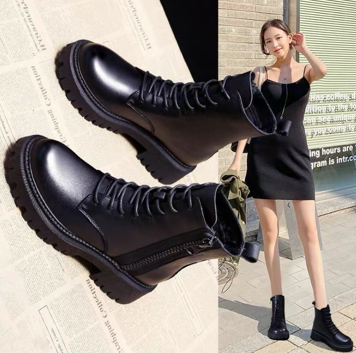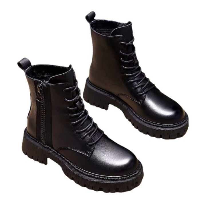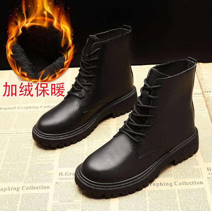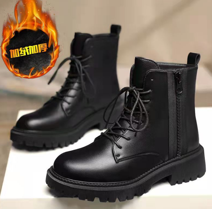 Autumn New Stylish Plush Shoes for Female Wearing British Style Fashionable Winter High Top Ankle Boots