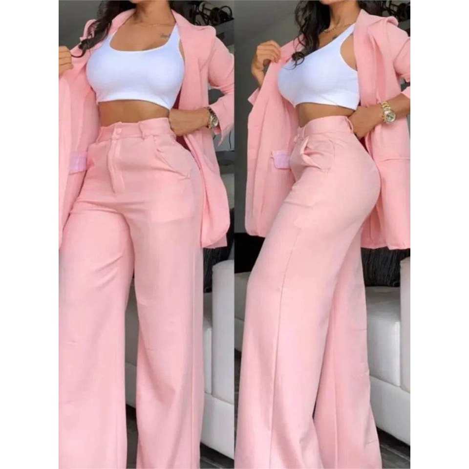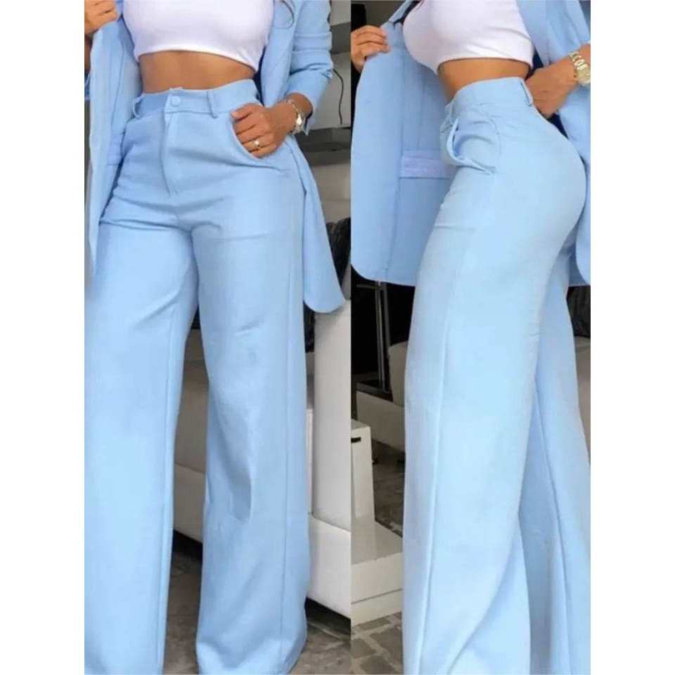 Autumn New Women's Elegant Business Office Casual Blazer Coat Trousers Set Solid Notched Collar Two Piece Suit