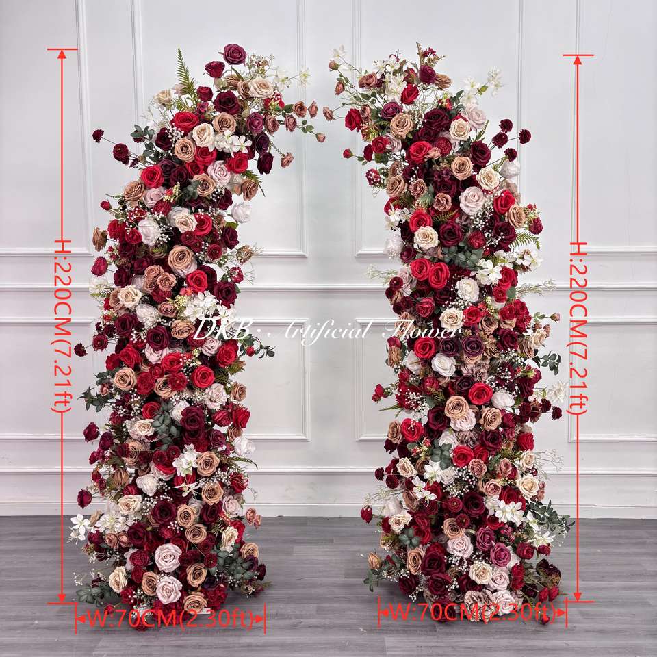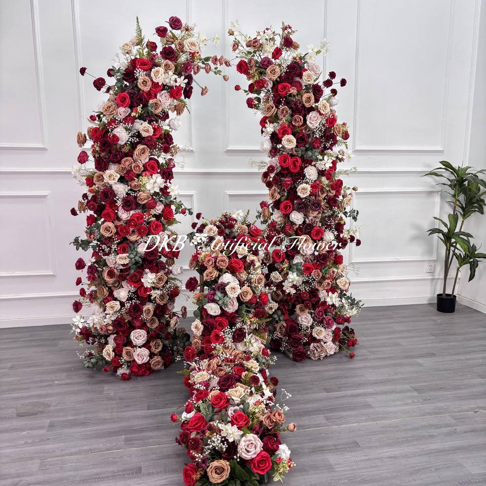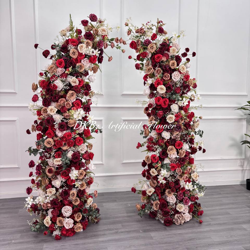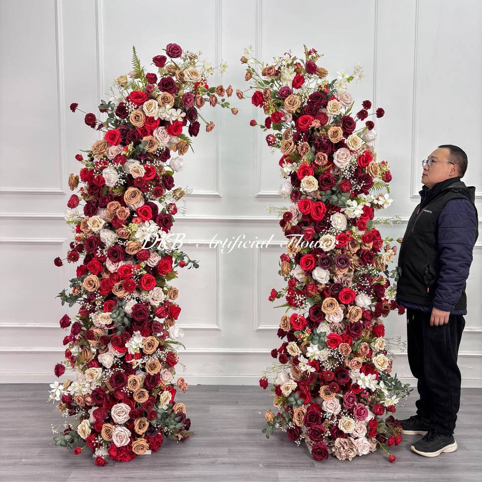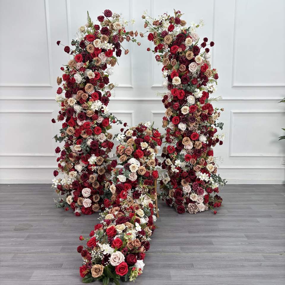 Autumn Series Floral Arrangement Decoration Handmade Red and Brown Silk Rose Horn-Shaped Flower Backdrop Decorative