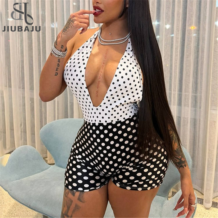 Autumn Sexy V-Neck Sleeveless Dot Print Bodycon Jumpsuit Women's Backless Romper