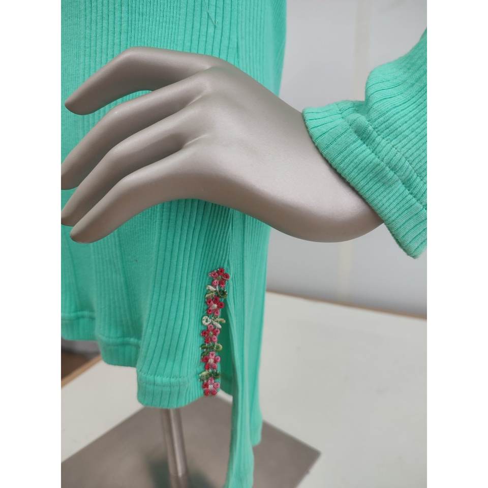 Autumn & Spring Female Bohemian Blouse with Embroidered Logo Half Sleeve Length Ruffled Collar Breathable Chiffon Fabric Size XL