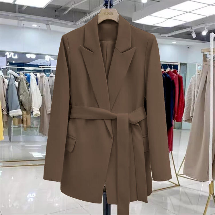 Blazer da Donna Fashion Autunno/Primavera, Stile Coreano, Slim, con Collo a Revers e Cintura, Giacca Casual da Signora