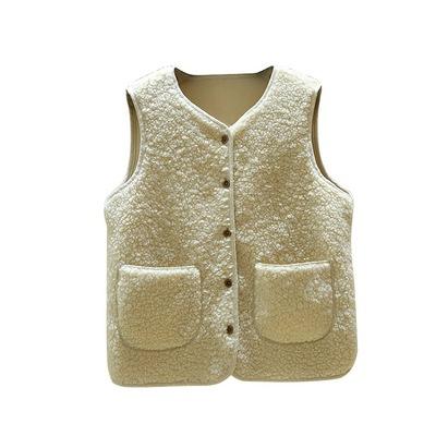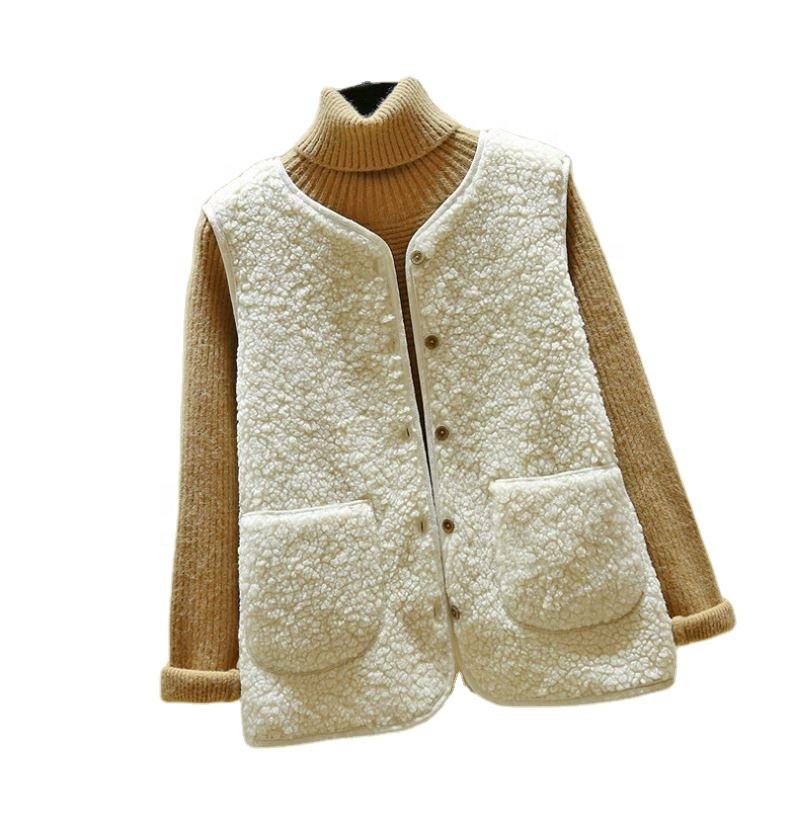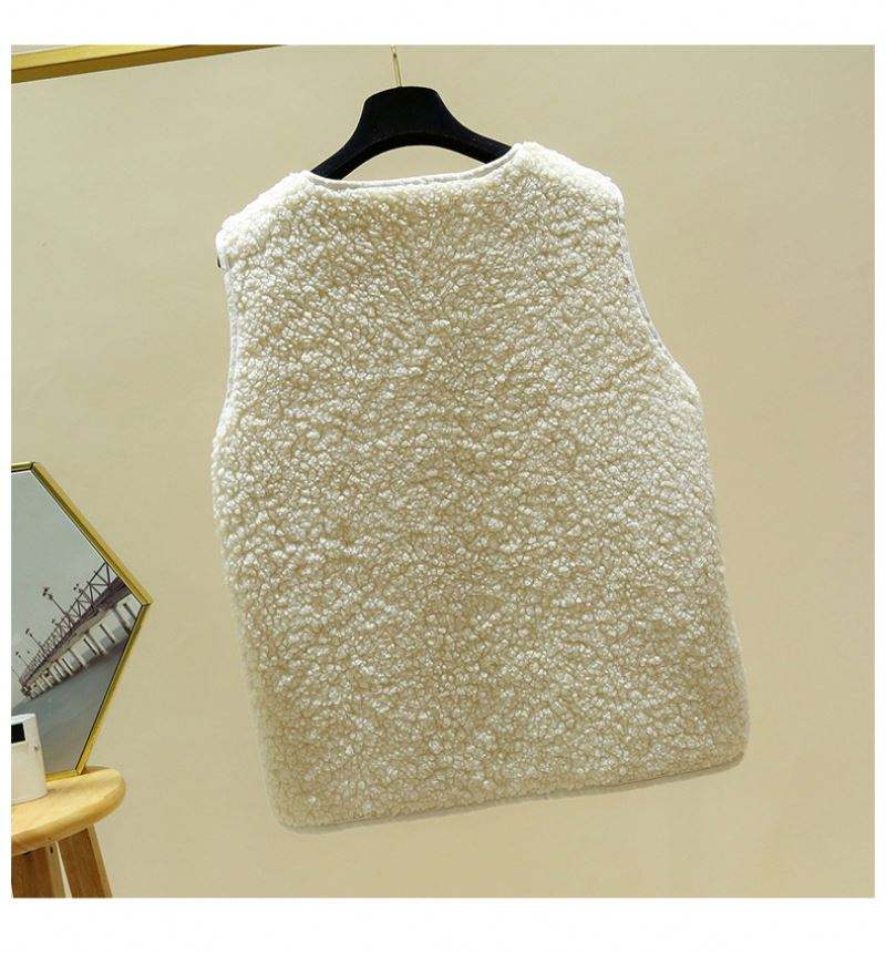Autumn Winter 2021 Women's Casual Waistcoat Sleeveless Woolen Vest with Pocket Solid Color Fluffy Jacket Knitted Top