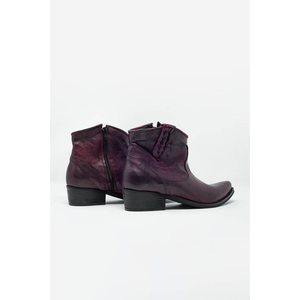 Autumn/Winter Casual Western Sock Boots Maroon Fur Upper High Heel Chelsea Style Slip-On Closure 100% Genuine Leather PU Insole