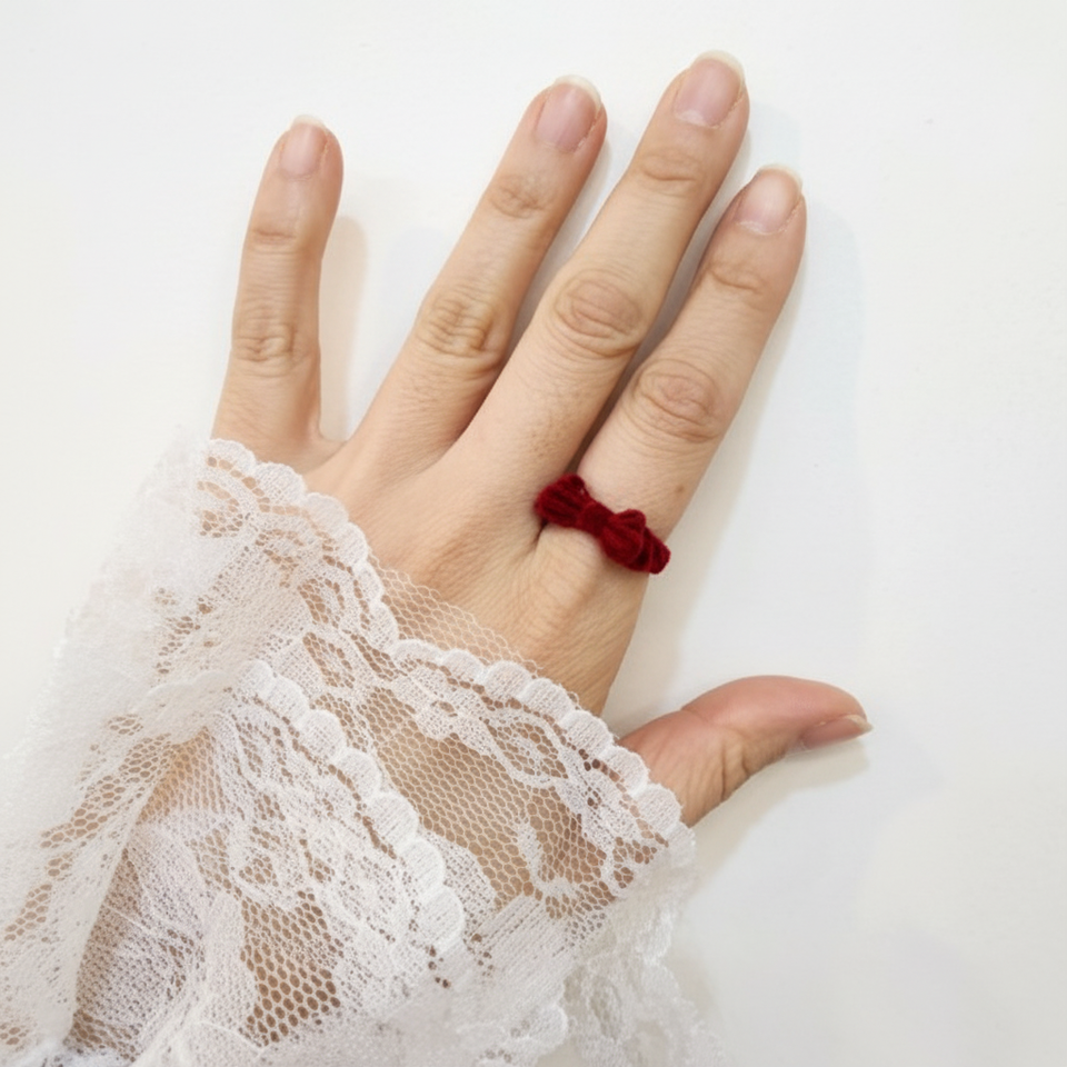 Autumn Winter Fashion Ring with Red Velvet Point Wire Ribbon Detail