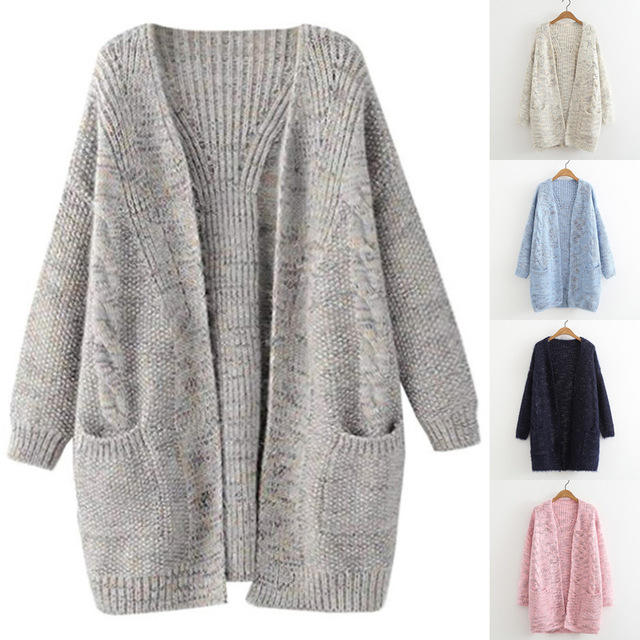 Autumn Winter Fashion Women Long Sleeve Loose Knitting Cardigan Sweater