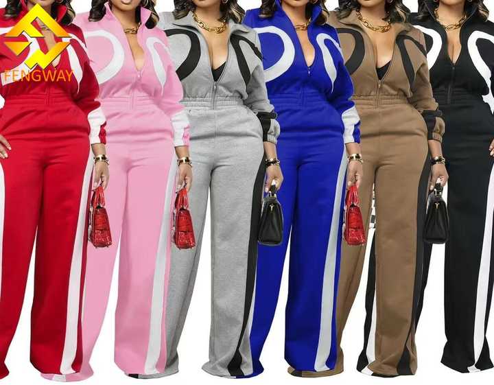 Tuta Intera Autunno Inverno con Patchwork Colorato, Zip e Maniche Lunghe, Stile Sportivo per Donne