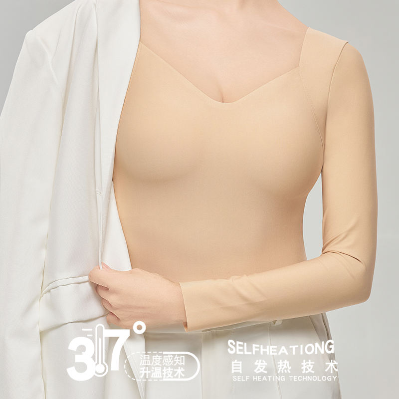 Maglia Termica a Maniche Lunghe Autunno/Inverno per Donna, Intimo Senza Cuciture con Imbottitura al Petto, Strato Base ad Asciugatura Rapida in Nylon e Spandex per Attività all'Aperto