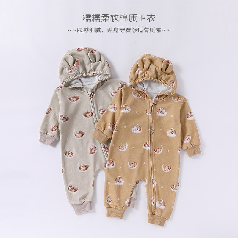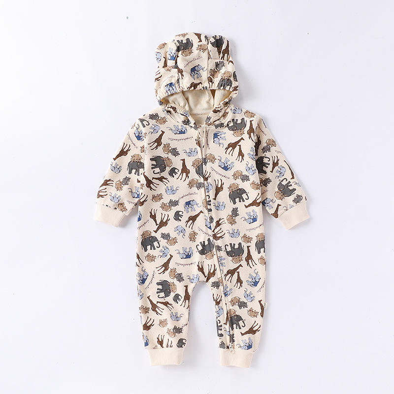 Autunno/inverno tuta con cerniera neonato con cappuccio felpa a maglia carina con motivo animale per ragazzi e ragazze stile europa