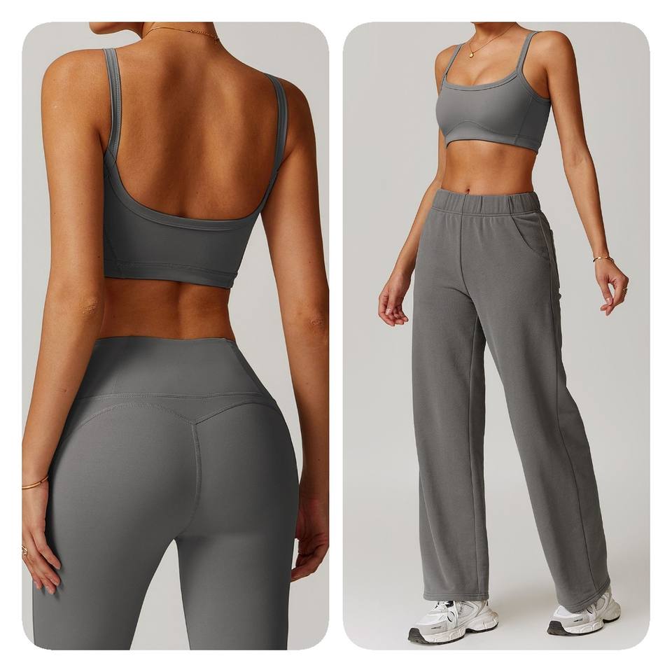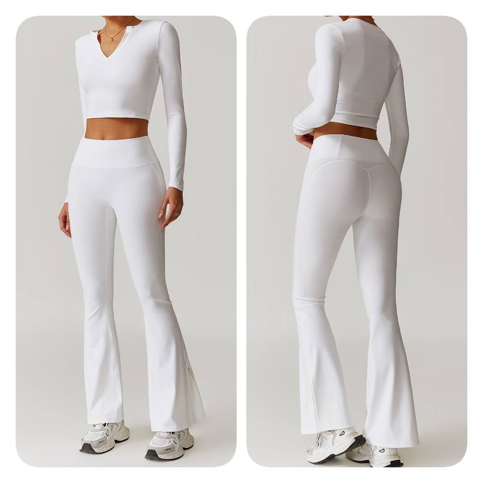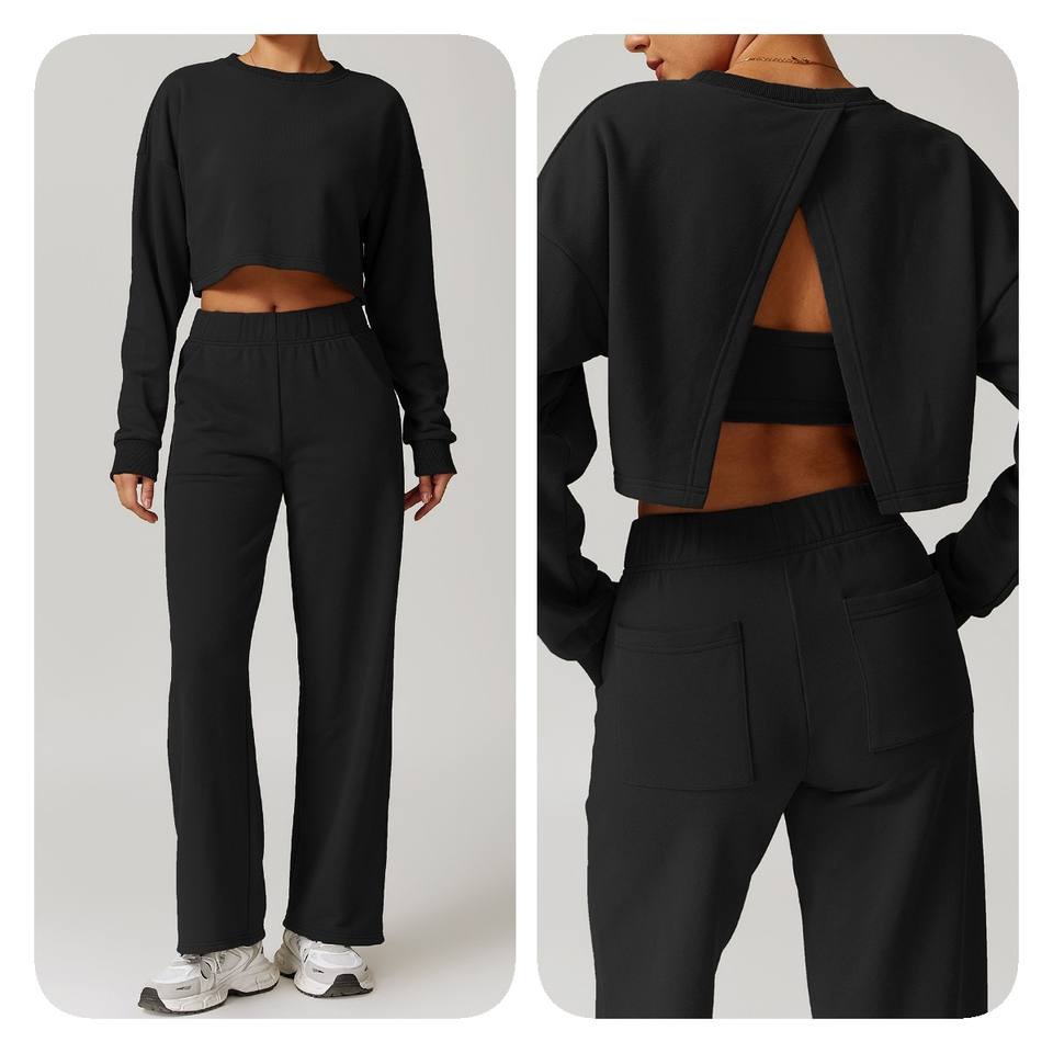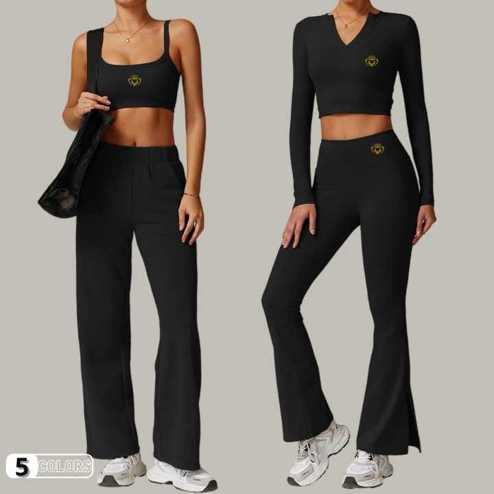 Completo Sportivo Autunno Inverno da Donna, 5 Pezzi, Maniche Lunghe, Leggings a Vita Alta, Pantaloni Larghi per Yoga e Fitness