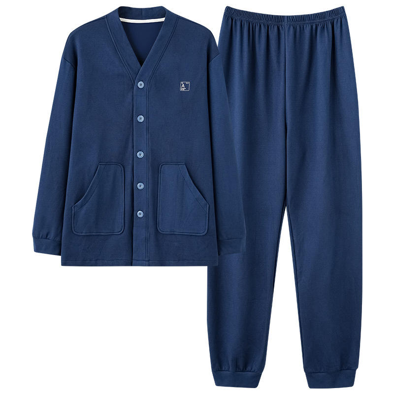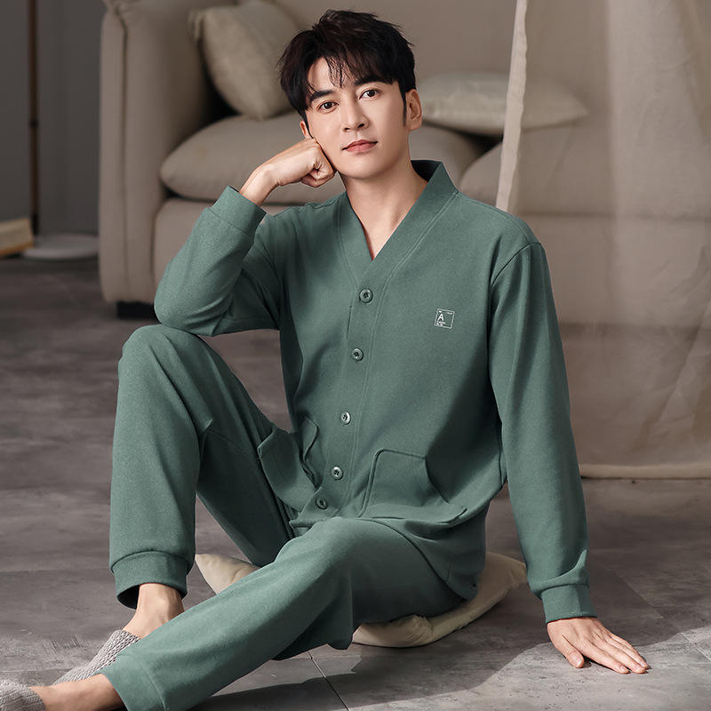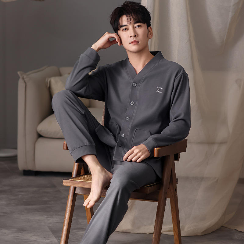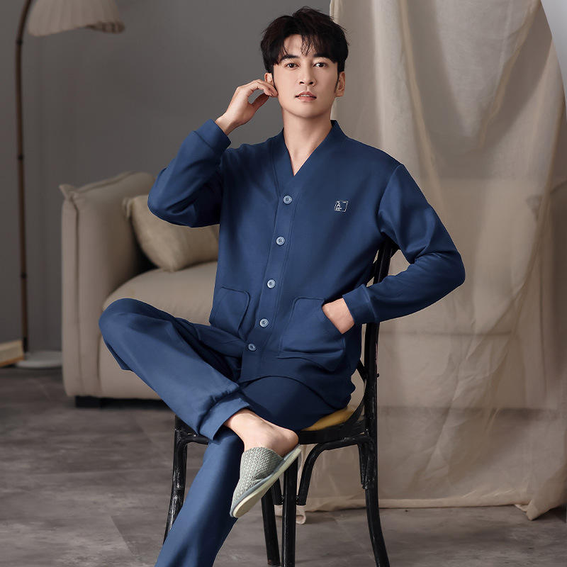 Pigiama da uomo in velluto tedesco caldo e traspirante autunno/inverno, completo intero a maniche lunghe, taglie forti, in maglia 180g, tinta unita