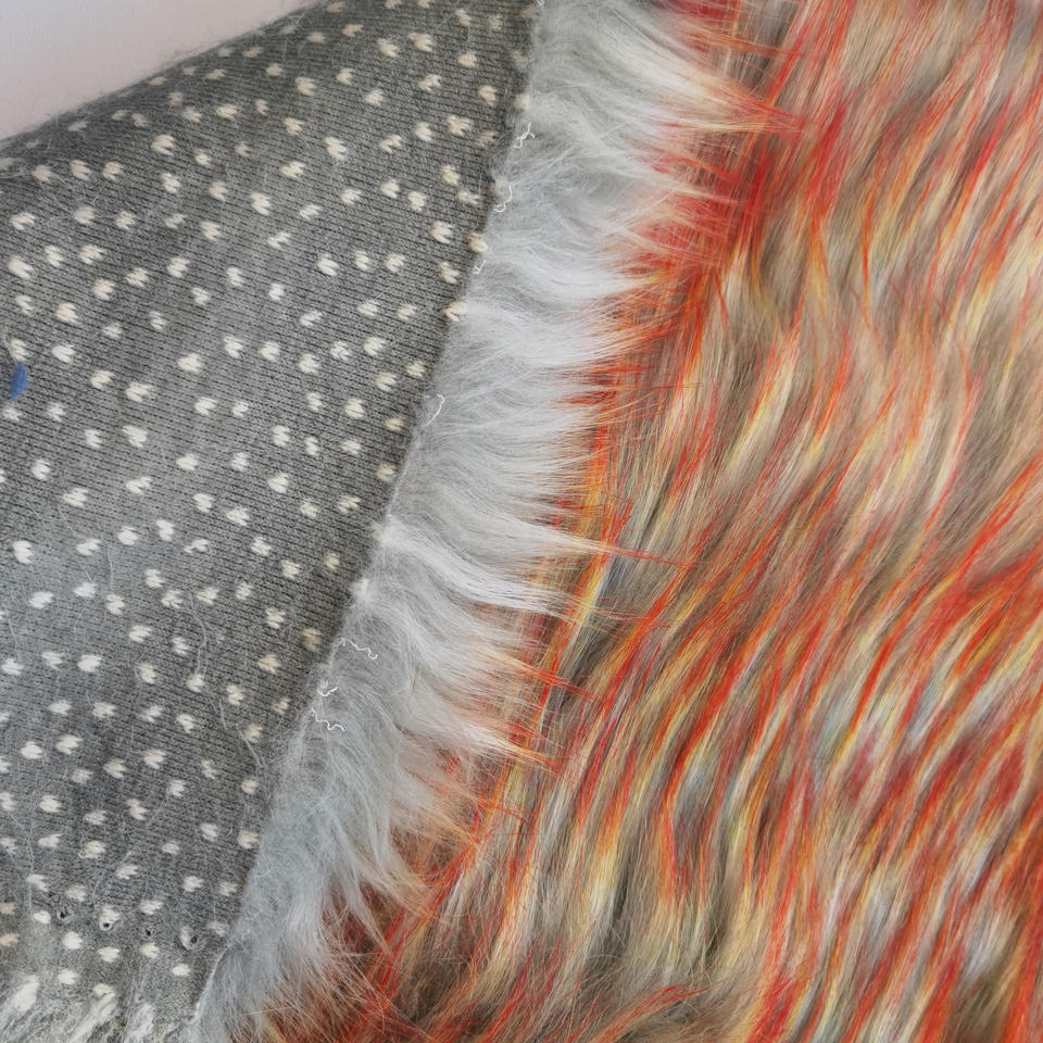 Copridivano e Cuscino in Pelliccia Sintetica Stampata, Caldo e alla Moda per Autunno e Inverno, Tessuto per la Casa in 100% Poliestere, Arancione e Grigio