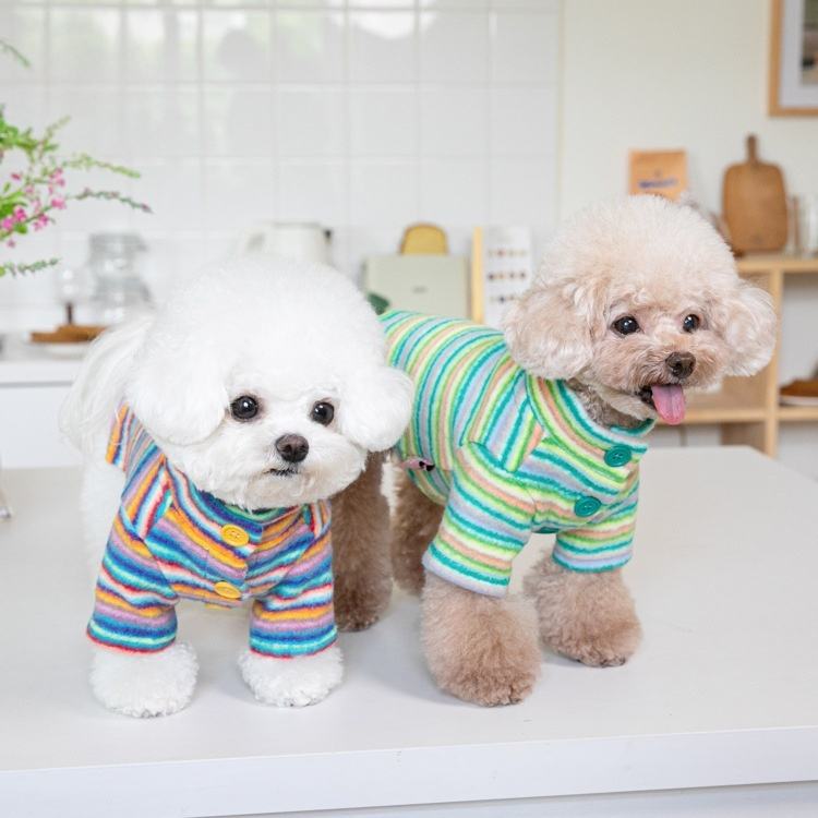 Autunno inverno caldo cappotto invernale cane a righe grazioso stile occidentale Teddy Dog abbigliamento prodotto orsacchiotto