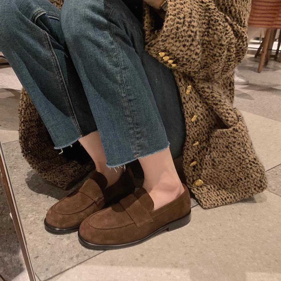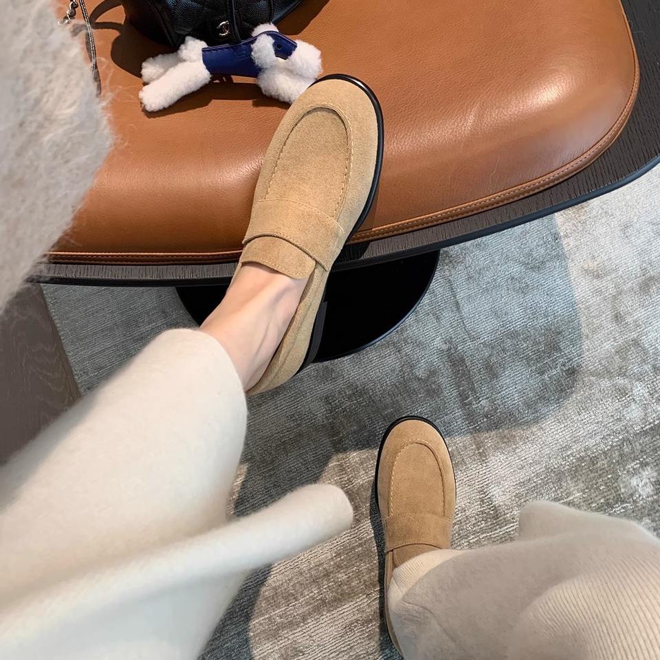 Autumn Women's Retro British Style Suede Thick Heel Slip-On Lazy Loafers Grape Solid Color Walking Style Shoes Fast Stock